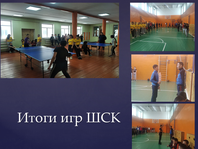 Сегодня в МБОУ ЭРЗИНСКАЯ СШ проведены игры муниципального этапа Всероссийских школьных спортивных клубов ( ШСК) Республики Тыва. Игры проводятся в соответствии с Указом Президента РФ о десятилетии детства и развития сети школьных спортивных клубов. В программу соревнований входят игры: баскетбол, футбол, настольный теннис и лёгкая атлетика ( 100м). В итоге игр победу одержала команда МБОУ ЭСШ. Призерами стали: 2 место- МБОУ СОШ с Нарын, 3 место- МБОУ Кызыл- Сылдысской СОШ.