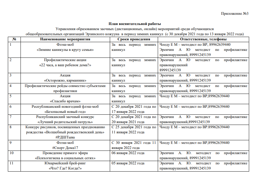Без рубрики Онлайн-мероприятия на региональном и муниципальном уровнях 29.12.2021 / ПРИКАЗ-УО-о-завершении-2-четв-2021г- Приложения 1 ,2 ,3 о меропрятияхСкачать Приказ МО РТ №1131-д-при-значительных-понижениях-температурыСкачать Распоряжение администрации кожууна о температурном режимеСкачать