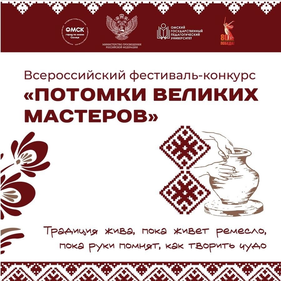 Подробности и Положение Фестиваля-конкурса — на сайте организатора: clck.ru/3LQsZAФестиваль-конкурс уже восьмой год объединяет молодые таланты со всей страны, является площадкой для творческого диалога поколений, обмена опытом и популяризации культурных традиций в современном обществе. #ПотомкиВеликихМастеров#ПотомкиВеликихМастеров2025#МыВместе#ГодЗащитникаОтечества#ОмГПУ#МинпросвещенияРФ